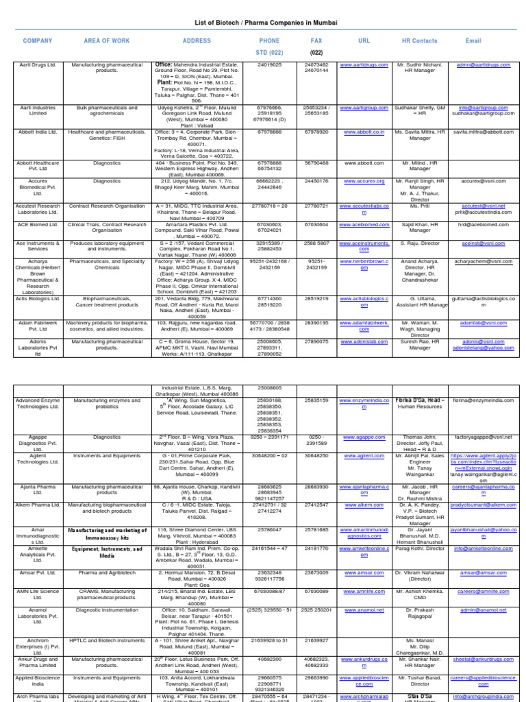 List of Pharma Companies in Mumbai from imgv2-2-f.scribdassets.com List of pharmaceutical companies in mumbai with address. Companies with headquarters in mumbai, india. 54 consulates general 39 consulates 3 representative offices. Name of company factory address office address. List of mumbai companies and services in nigeria. India is a country in south asia. List of mumbai companies and services in uae. The embassypage for mumbai was last updated on 17 march 2021.