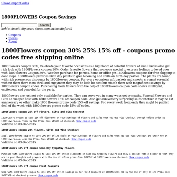 1800flowers coupons & free shipping codes. Get a discount code for up to 30% off when with signup for 1800flowers.com's email newsletter. Use code sympthyfftn at 1800flowers.com! Take up to 50% off sympathy flowers. You are viewing current 1800flowers.com coupons and discount promotions for may 2021.